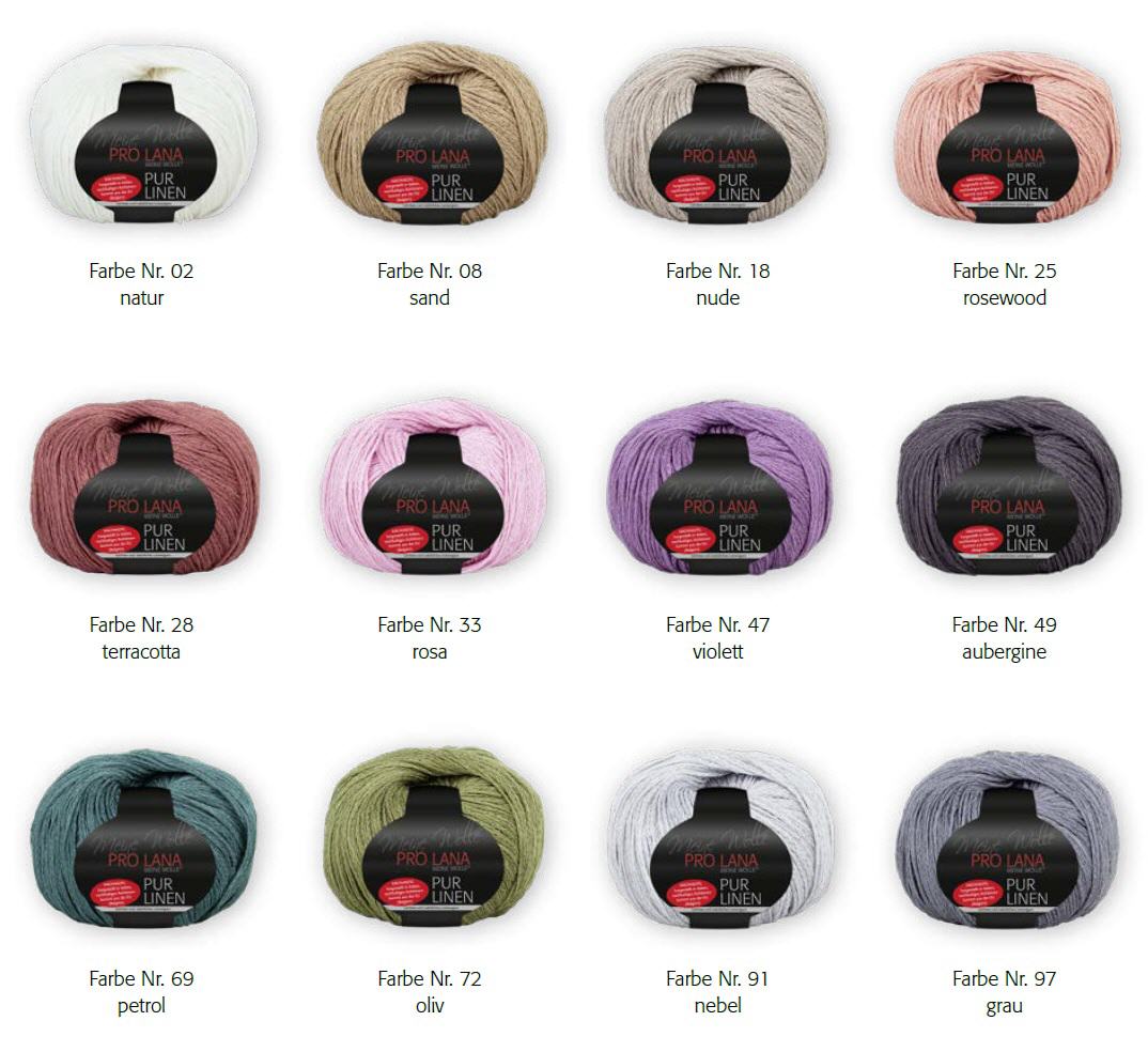 Pro Lana Pur Linen 100% Leinen Lauflänge ca. 160m/50g, Nadeln 4,5 - 5,5, Maschenprobe 10x10 cm: 16M-22R Knäuel a 50 g Schonwäsche bei 30°C Verbrauch Gr.38 ca. 350g