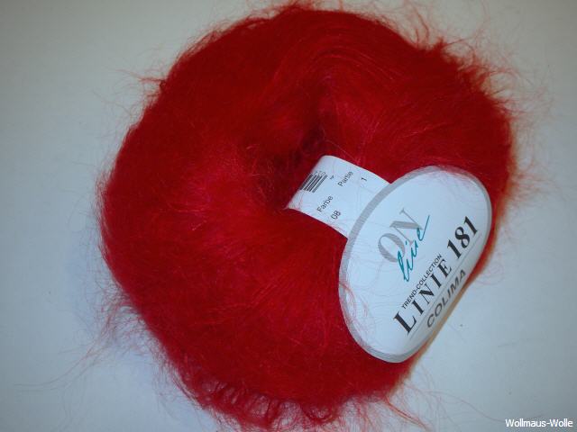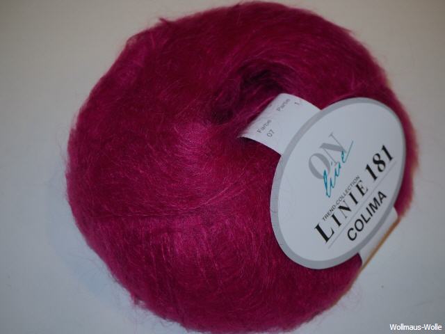 Linie 181 Colima 80% Mohair, 20% Polyester Lauflänge 25 g - ca. 100 m, Nadel: 4,0 - 5,0 , Verbrauch (laut Hersteller) Gr. 38-40 ca. 300 g., Maschenprobe 10x10 cm: 19M-26R Knäuel a 25 g. Handwäsche