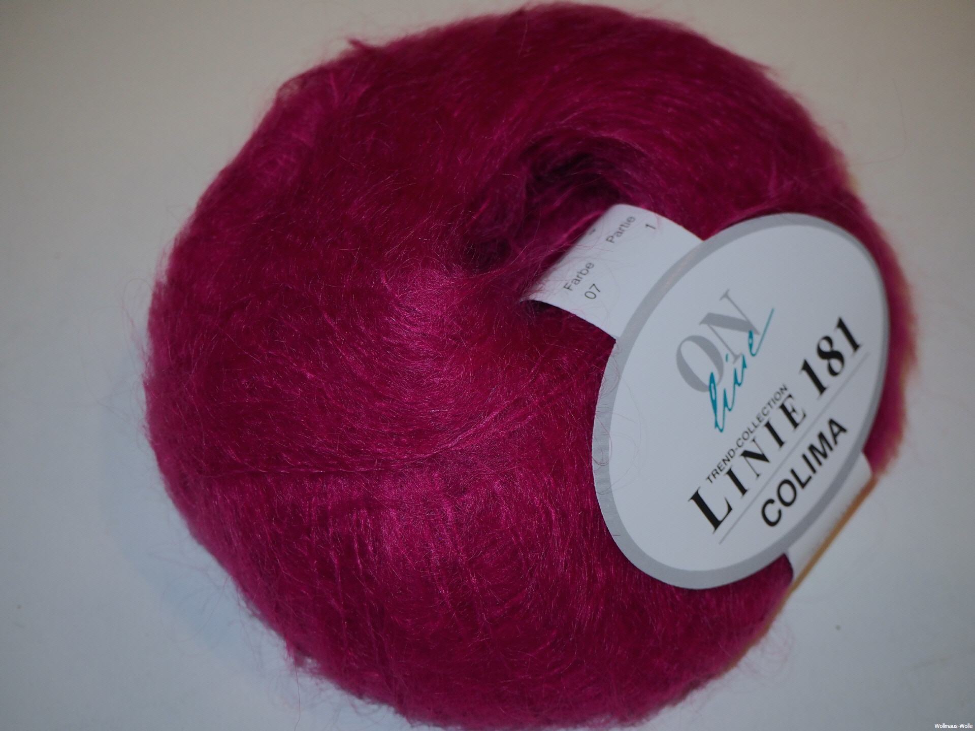 Linie 181 Colima 80% Mohair, 20% Polyester Lauflänge 25 g - ca. 100 m, Nadel: 4,0 - 5,0 , Verbrauch (laut Hersteller) Gr. 38-40 ca. 300 g., Maschenprobe 10x10 cm: 19M-26R Knäuel a 25 g. Handwäsche
