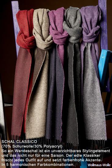 SCHAL CLASSICO,5 harmonische Farbkombinationen.,70% Schurwolle, 30% Polyacryl,Maße: 32 x 200 cm