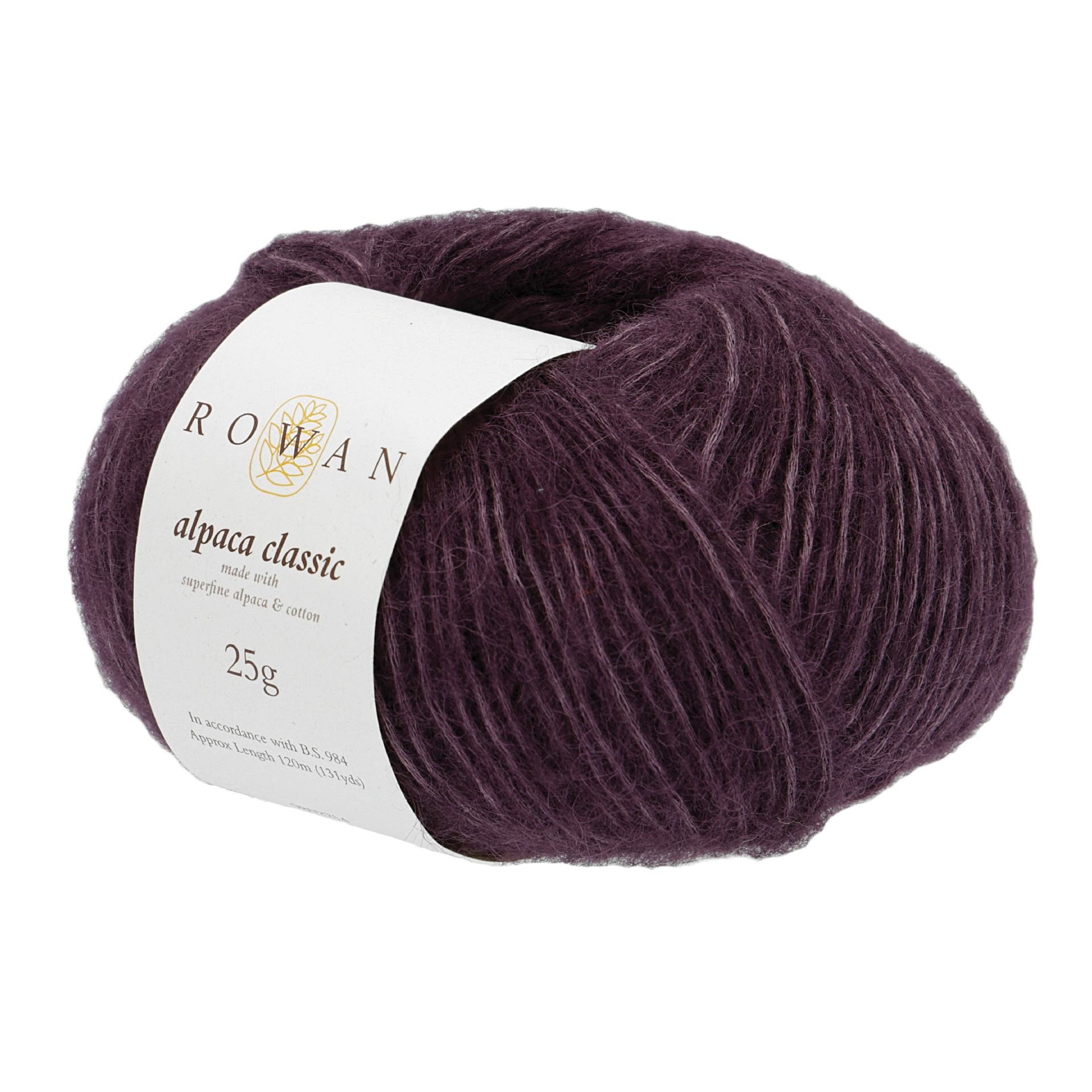 Rowan Alpaca Classic Zusammensetzung 57% Alpaka, 43% Baumwolle Nadelstärke 3,75 mm Maschenprobe 10 x 10 cm 23 M und 31 R Aufmachung Knäuel, Lauflänge ca. 120m / 25g Handwäsche
